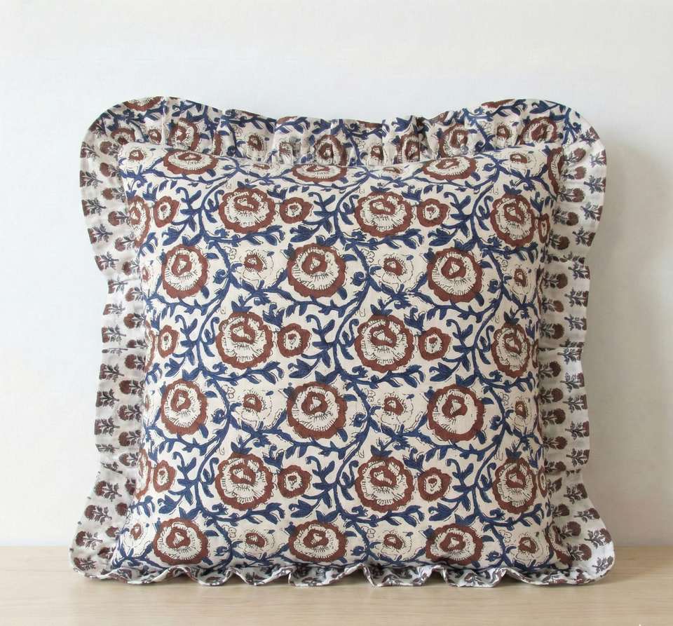 Handmade Bohemian Square Cotton Cushion Cover Floral Block Print Eco-Friendly Washable Home & Hospital Use Pillow Covers
