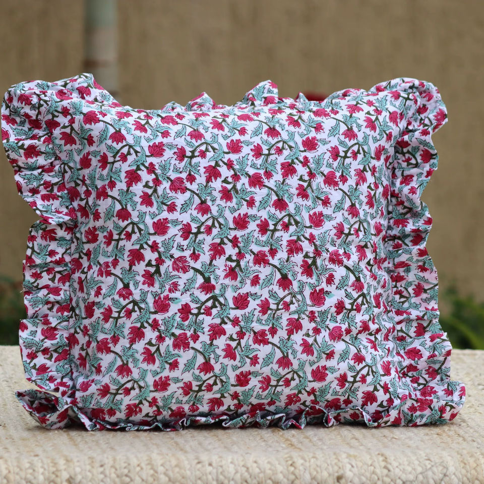 Handmade Bohemian Cotton Pillow Covers Luxury Indian Block Print Frill Cushion Cover Floral Throw Raffle Customizable Floral