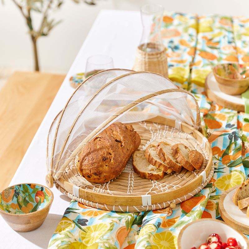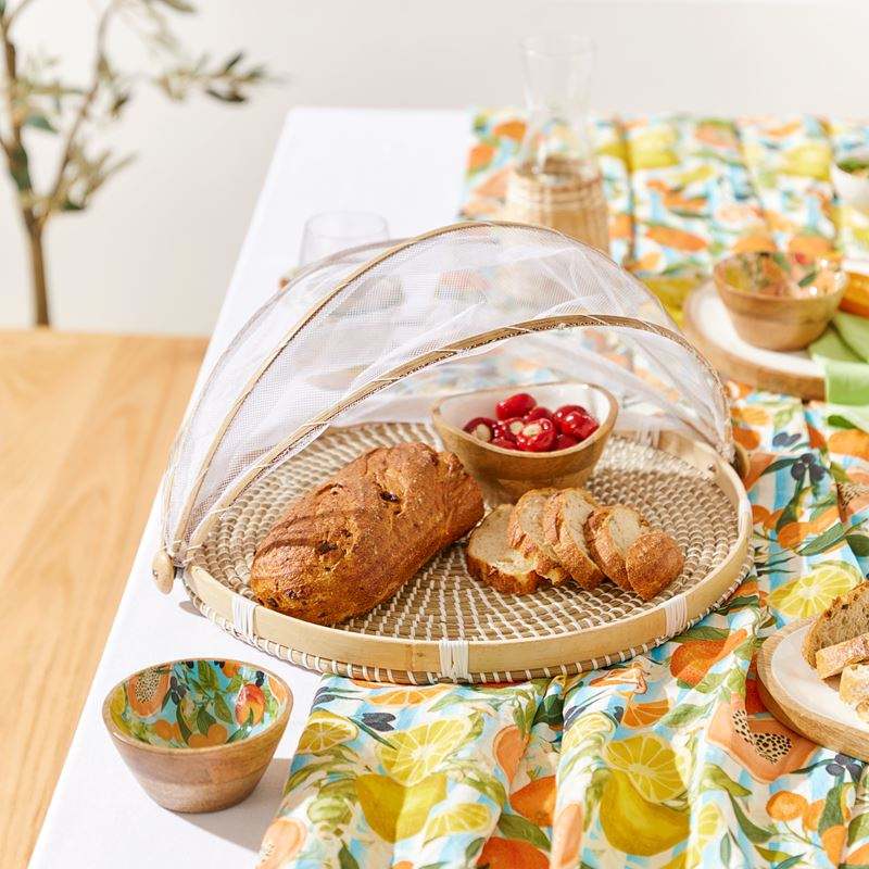 Handmade Bohemian Eco-Friendly Storage Basket Basic Food Storage for Bread Fruit and More White String Net with Bamboo Cover!