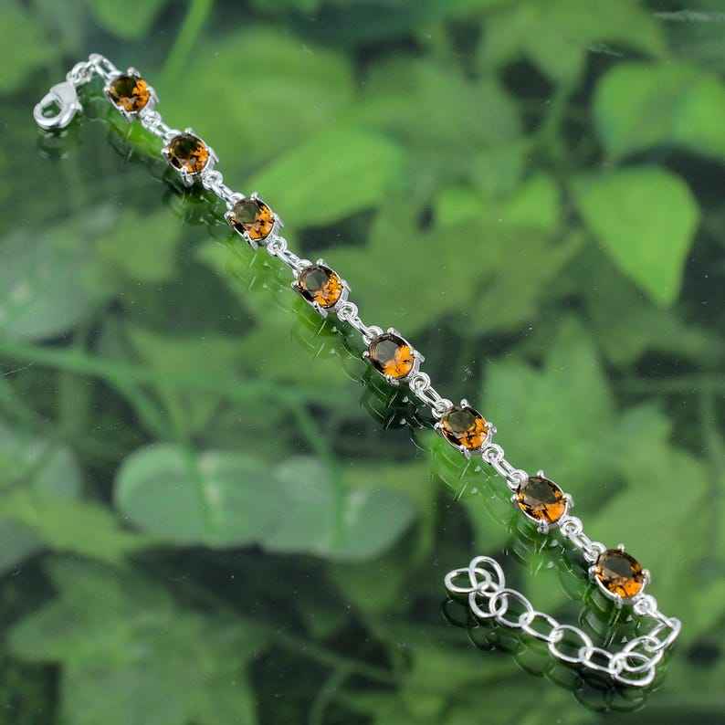 Handmade Bohemian Elegant Chain Bracelet Adjustable Sterling Silver with Smoky Quartz Gemstone Fine Jewelry-for Gift