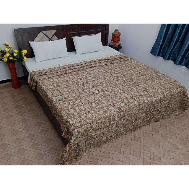 Handmade Bohemian Floral Reversible Bedspread Indian Cotton Queen Size Quilt Embroidered Gudari Bedding Kantha Throw Washable