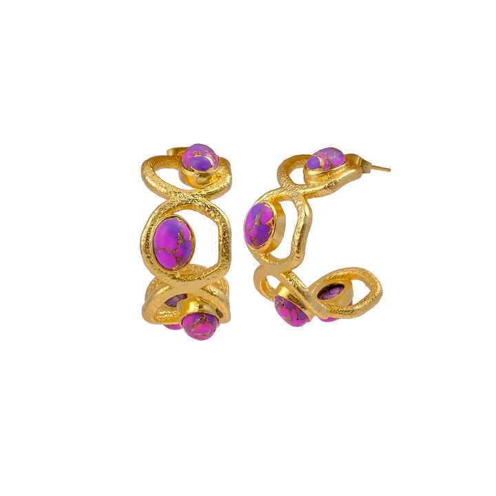 Handmade Bohemian Mohave Copper Turquoise Gold-Plated Brass Hoops Statement Stud Earrings for Women