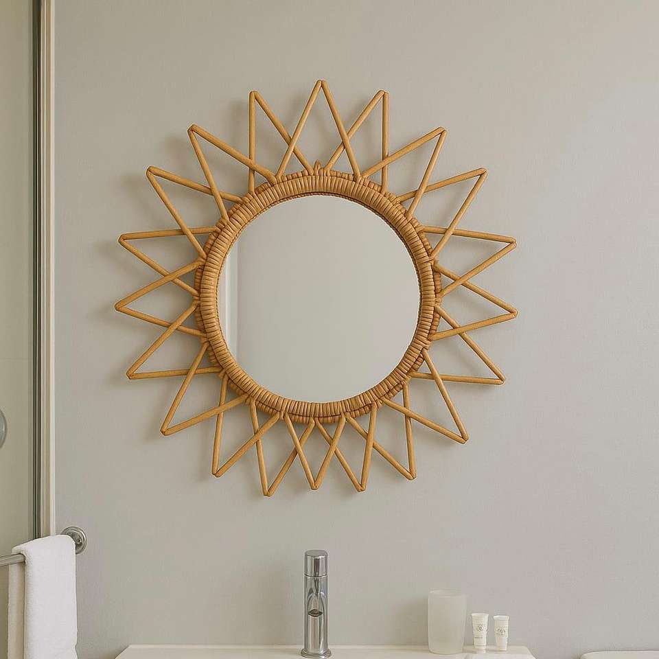 Handmade Bohemian Rattan Wall Mirror Versatile for Home and Hotel Use