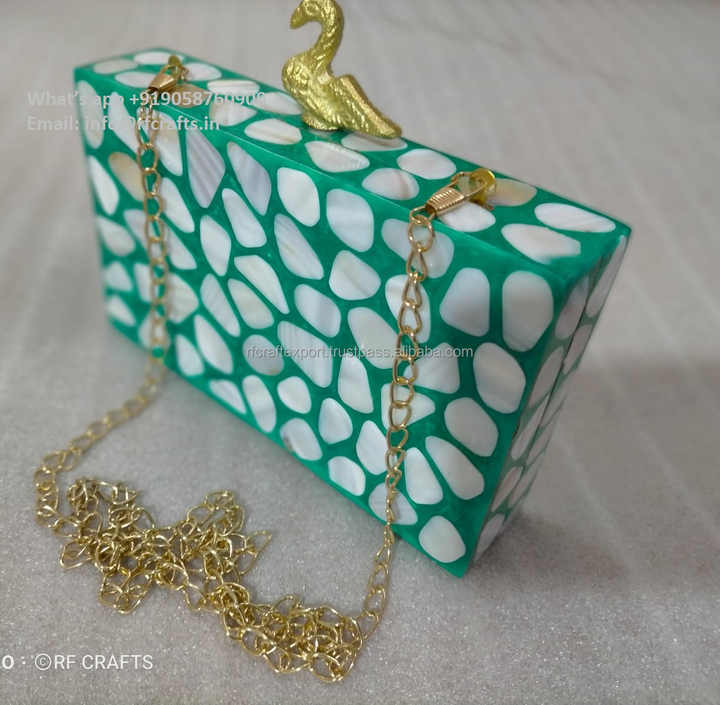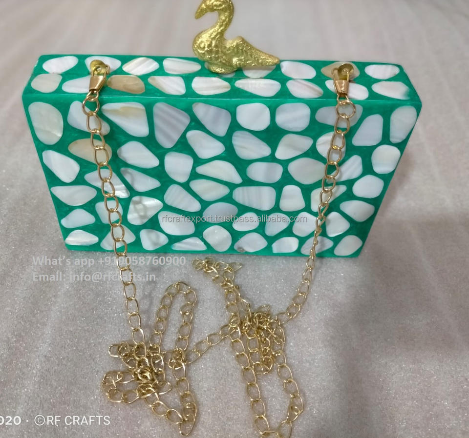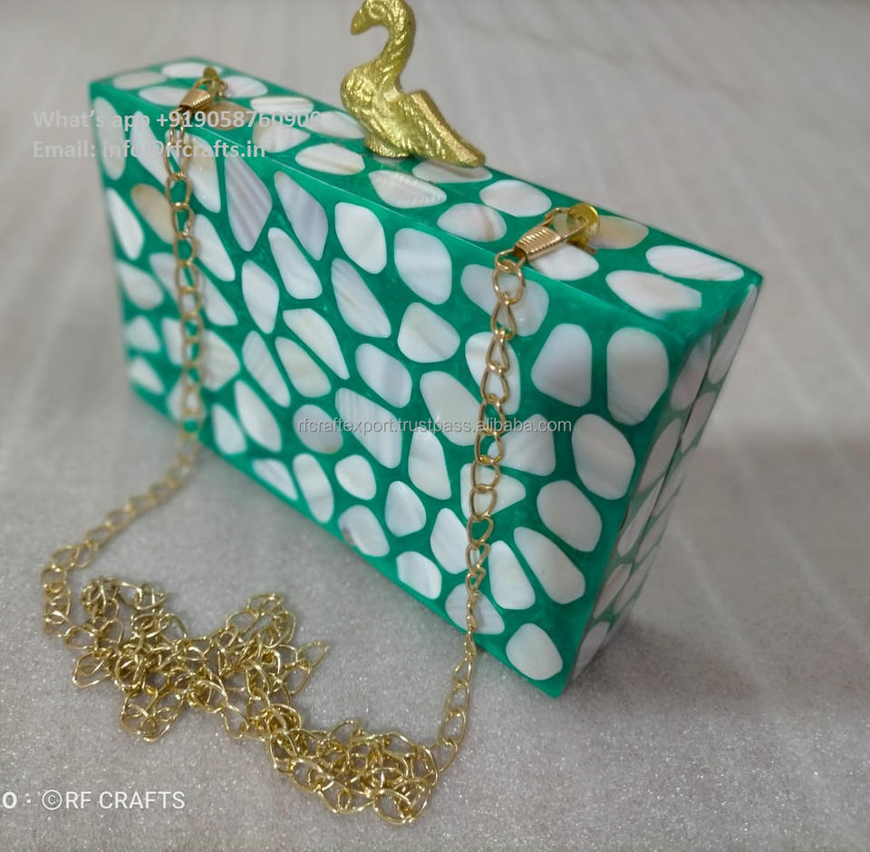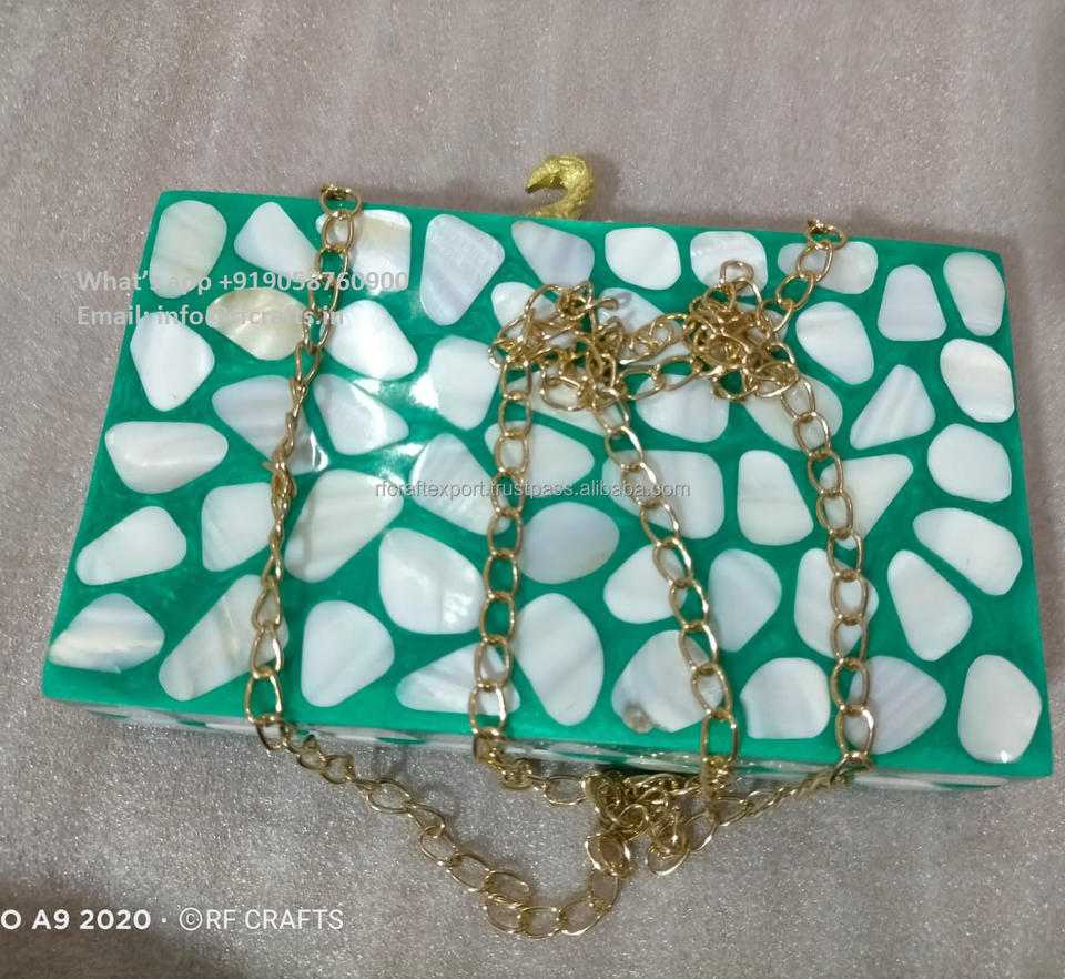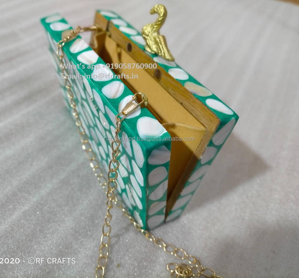 Handmade Bohemian Style Mother Pearl Metal Evening Clutch Bag Fashionable Lady's Party Purse Handbag Wholesale Price RF Crafts