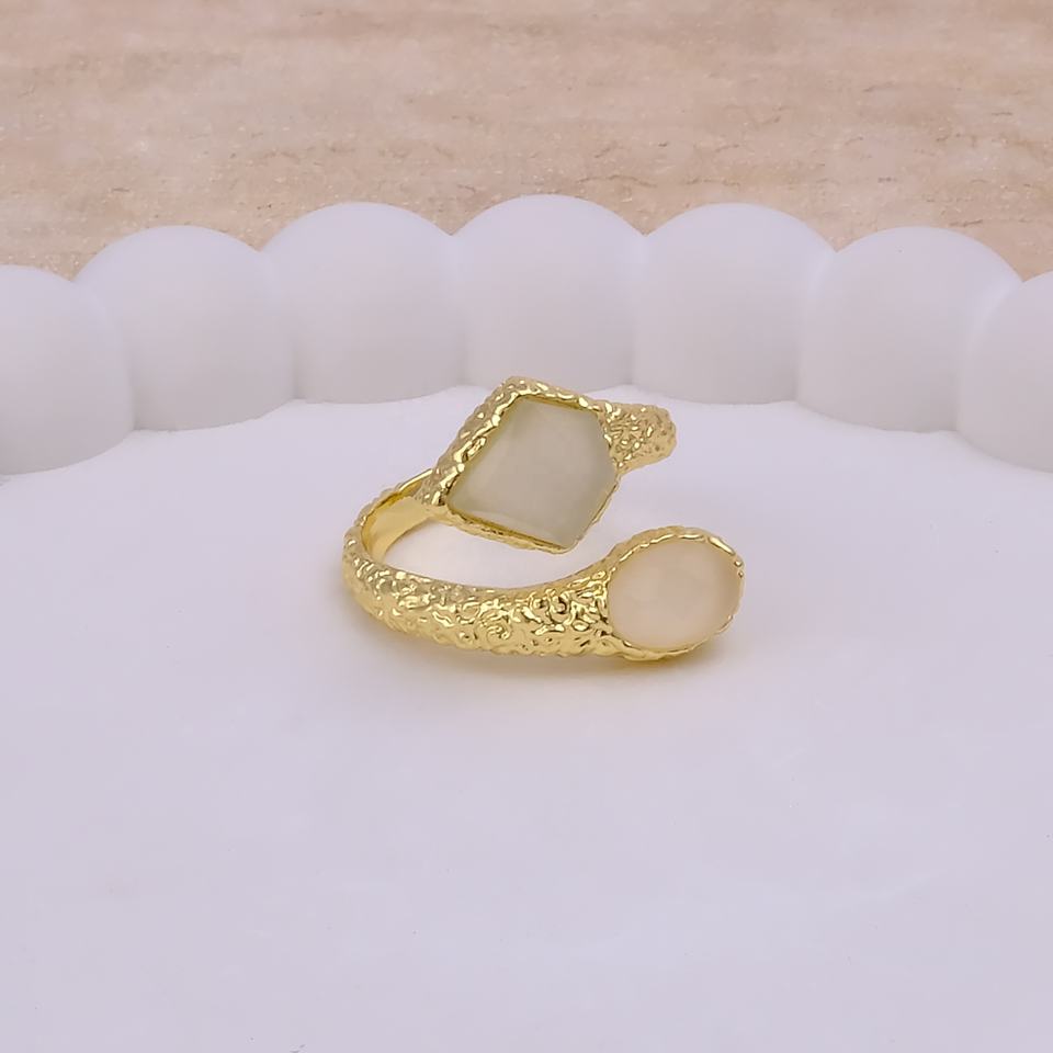 Handmade Boho Chic Adjustable Ring for Women White Moonstone Gemstone Textured Band in Gold Plated Brass Rings Trendy Jewelry