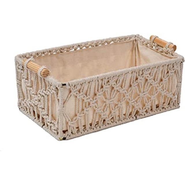 Handmade Boho Decor Counter Top Organizer Woven Decorative Toilet for Tank Shelf Cabinet with Macrame Cotton Rope Storage Basket