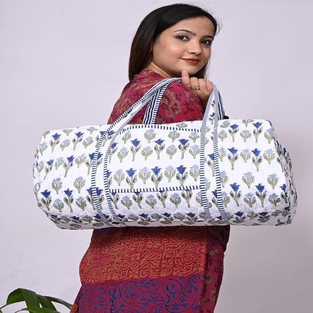 Handmade Boho Designer Luxury Cotton Duffle Bag White-Color Weekender Travel Shoulder Bag for Yoga Gym & Shopping