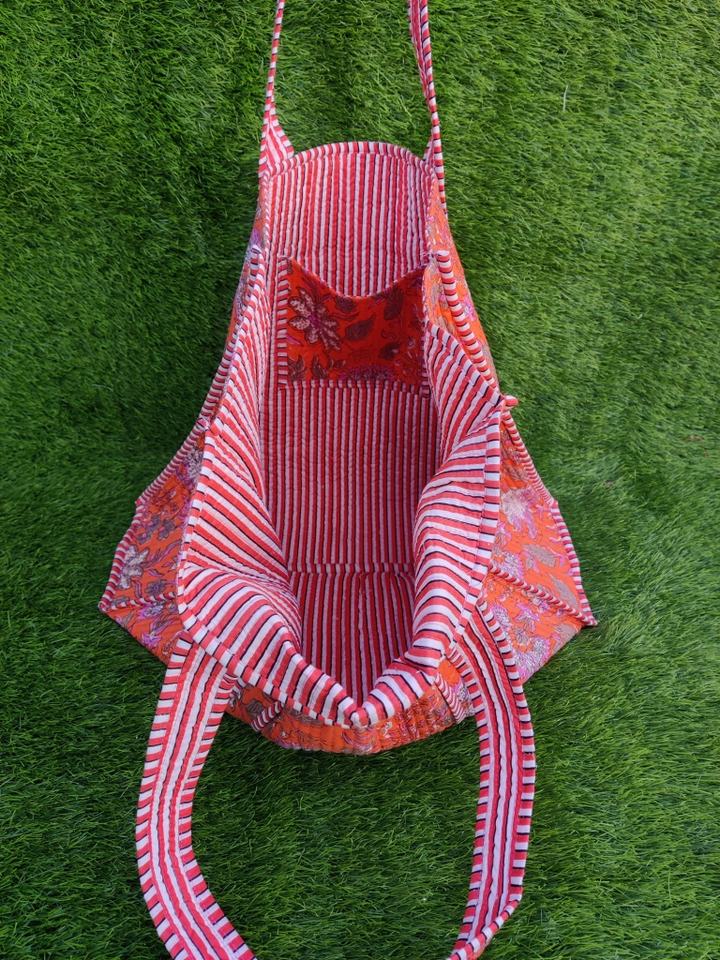 Handmade Boho Floral Quilted Cotton Tote Bag Eco-Friendly Sustainable Reversible Design Daily Handle Reusable Logo Gifts