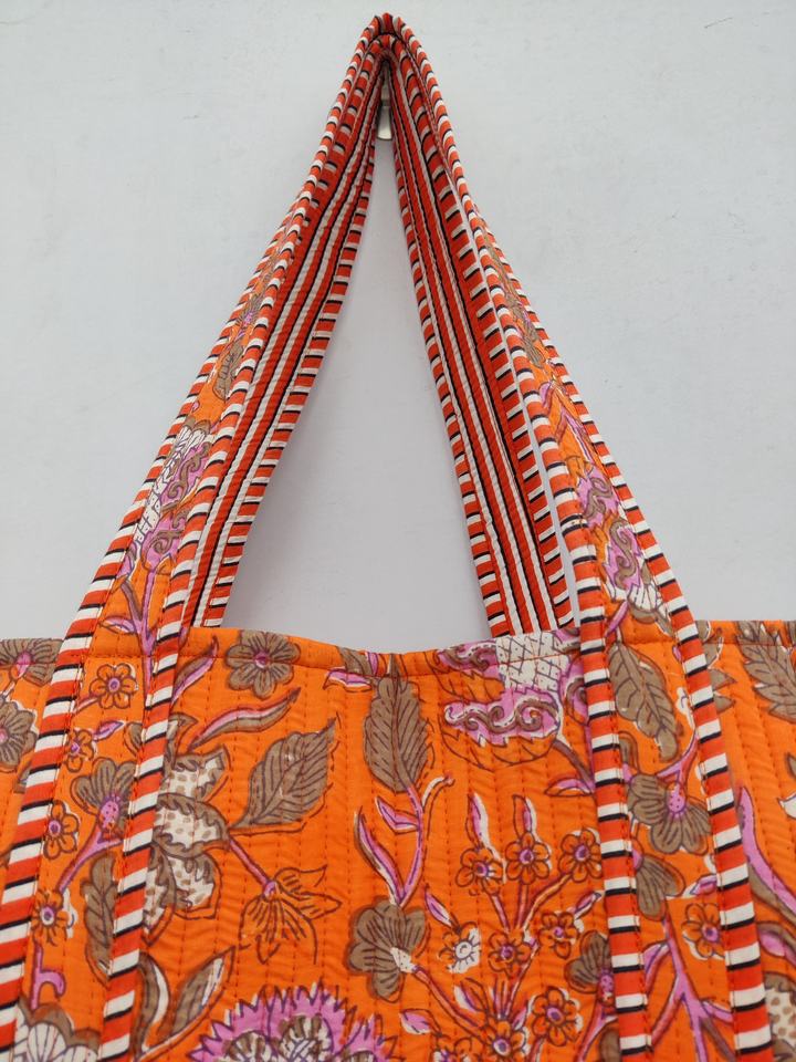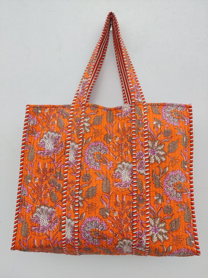 Handmade Boho Floral Quilted Cotton Tote Bag Eco-Friendly Sustainable Reversible Design Sturdy Daily Handle Reusable Shopping