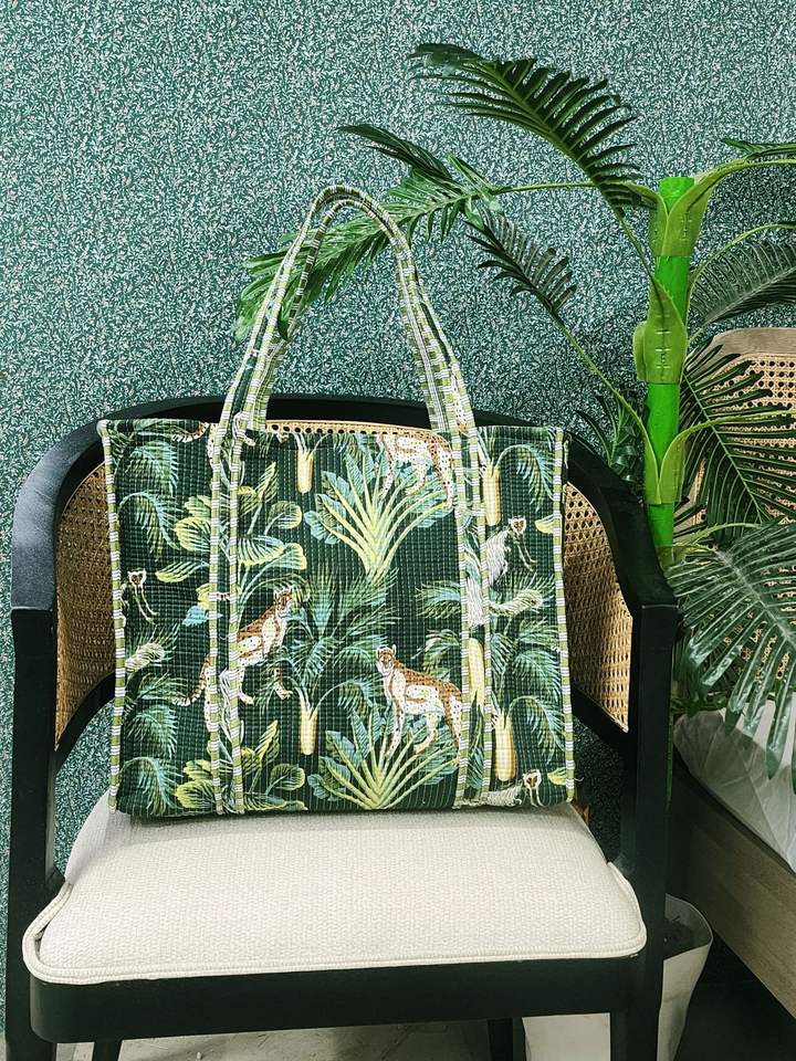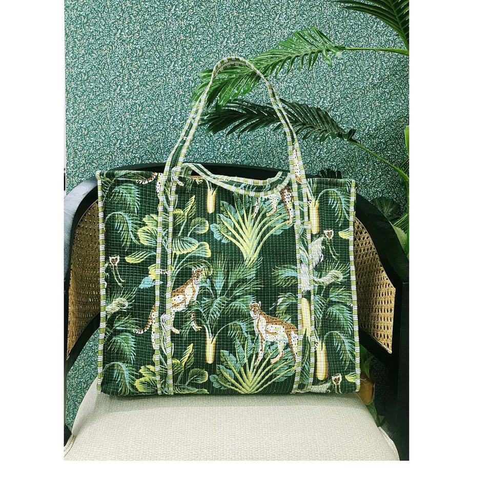 Handmade Boho Floral Stripe Quilted Cotton Large Tote Bag for Women Eco-Friendly Reversible Stylish Open Design Two Fashion