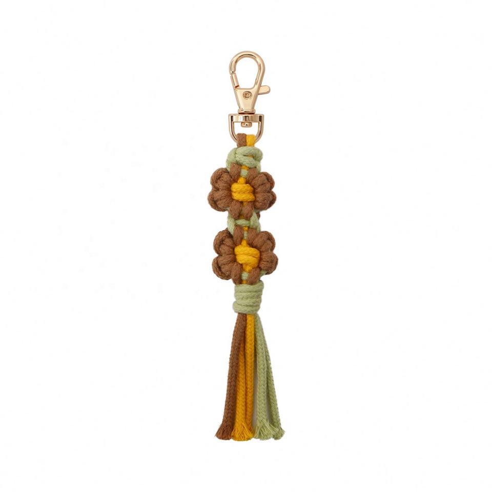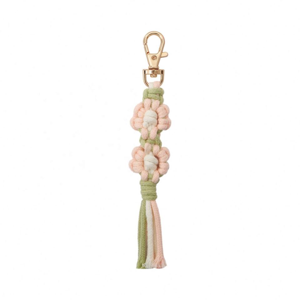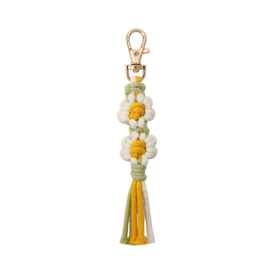 Handmade Boho Ins Crochet Daisy Flower Macrame Woven Cotton Bracelets Short Lanyard Wrist Strap Keychain Customizable Color Logo