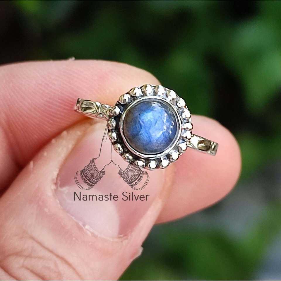 Handmade Boho Style Labradorite Silver Ring Natural Labradorite Gemstone Set in Sterling Silver Cut Stone Jewelry Gift for Her