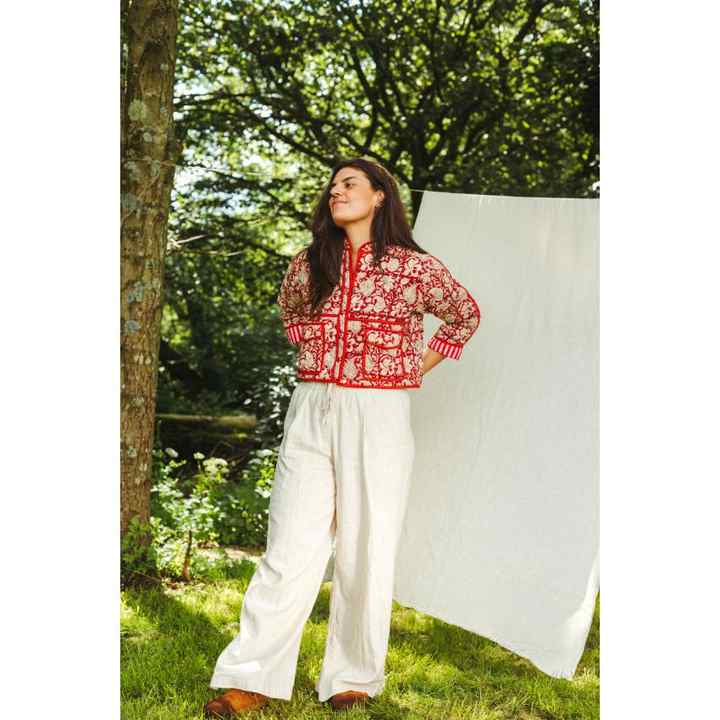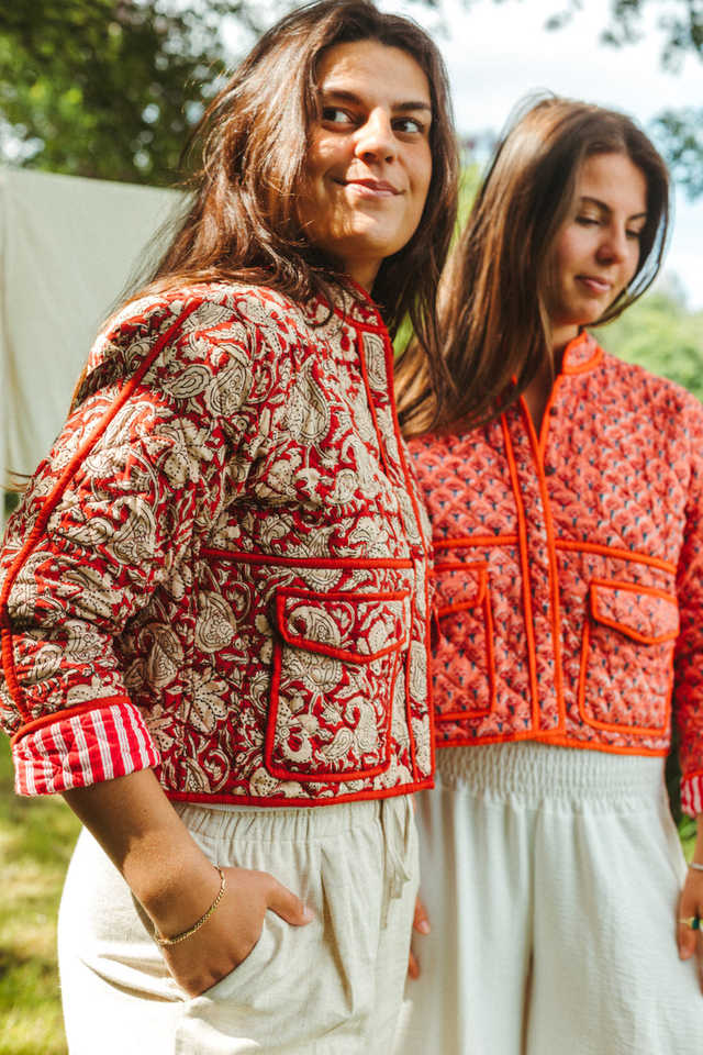 Handmade Boho Style Reversible Quilted Jacket for Women Block Printed Pure Cotton Winter Coat with Button Fastener
