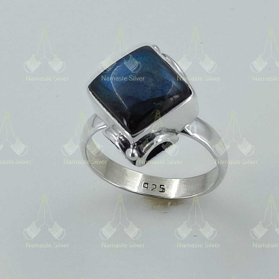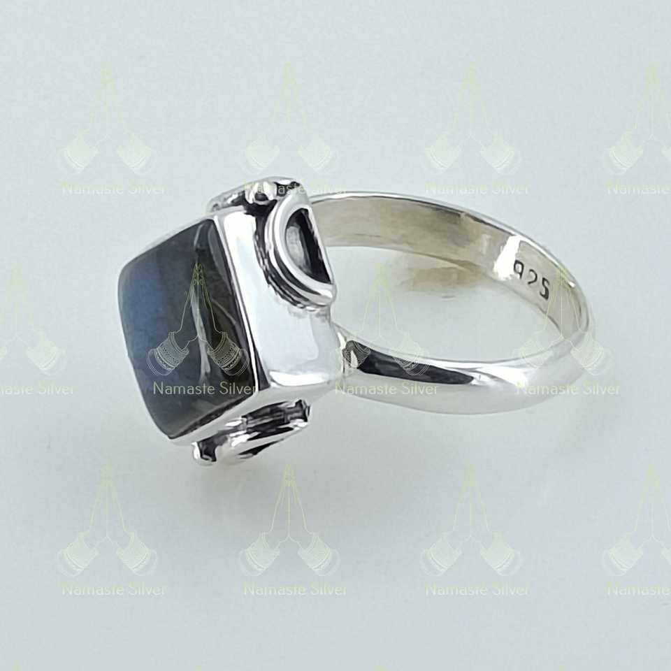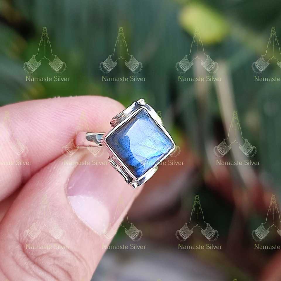 Handmade Boho Style Silver Labradorite Ring for Women Square Sterling Silver Gemstone Jewelry Gift Natural Labradorite