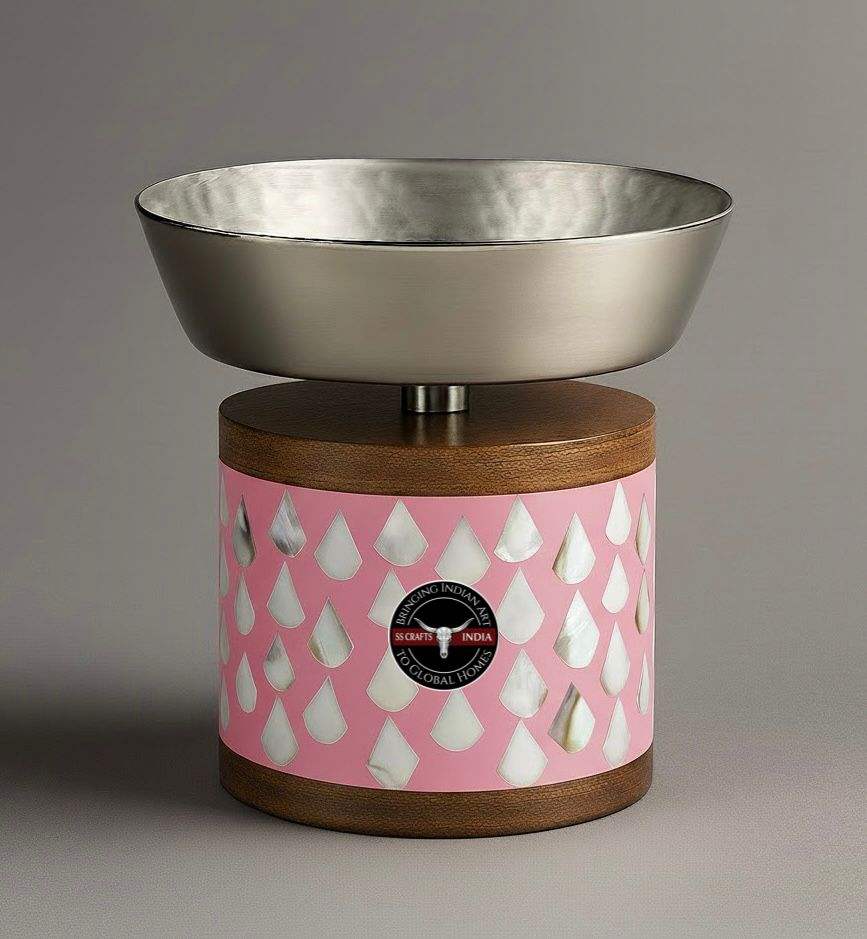 Handmade Bone Inlay Arabic Indian Religious Incense Bakhoor Burner with Metal Top Acacia Wood Base Elegant Fragrant Home Decor