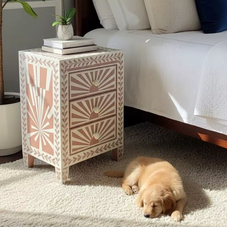 Handmade Bone Inlay Art Deco Design Movable Round Black White Coffee Table for Wedding Decor