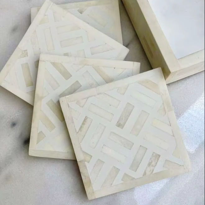 Handmade Bohemian Style Eco-Friendly Bone Inlay Coaster with Intricate Inlay Work for Protecting Wooden Glass Marble Tables