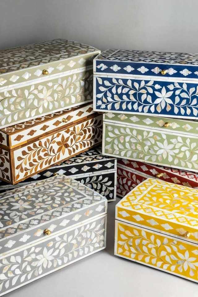 Handmade Bone Inlay Decorative Box Carved Bone Jewelry Storage Box Vintage Bone Craft Home Decor Gift Box