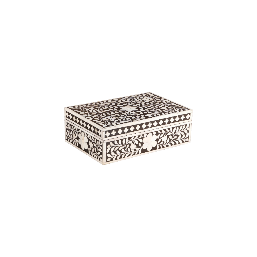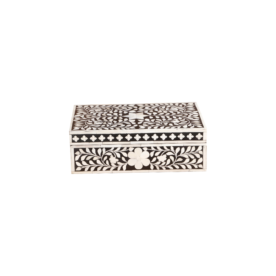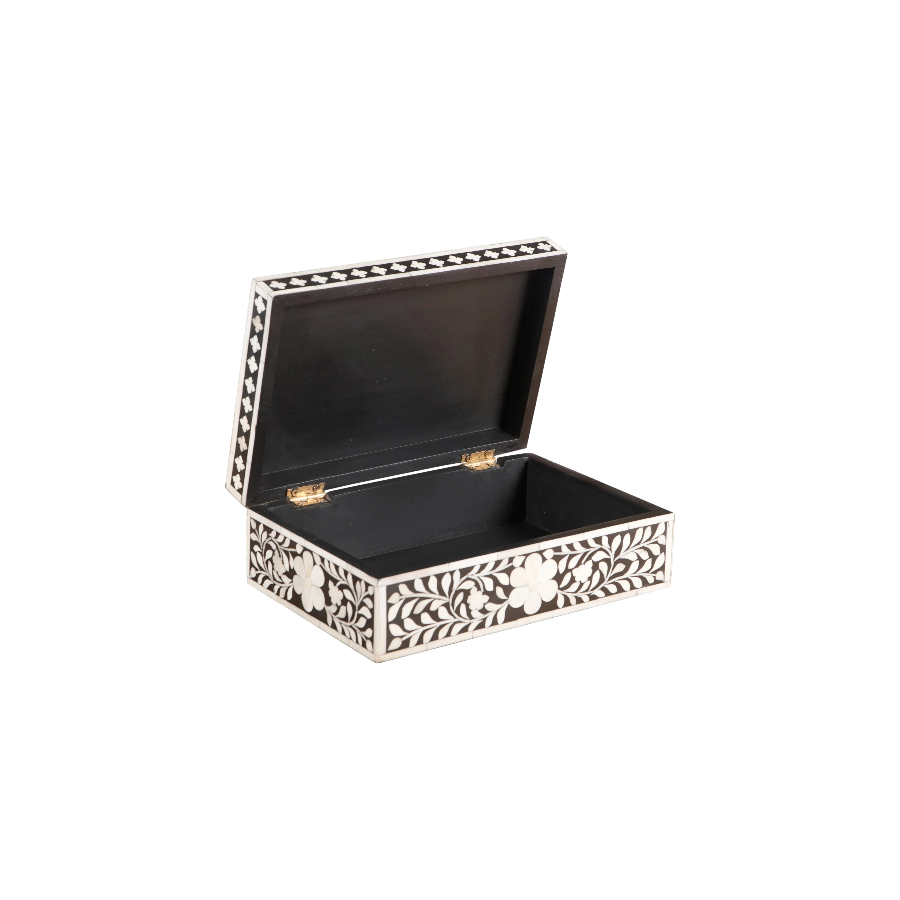 Handmade Bone Inlay Floral Design European Modern Luxury 2-Layer Rectangle Jewelry Storage Box Premium Resin Wood Custom Sizes