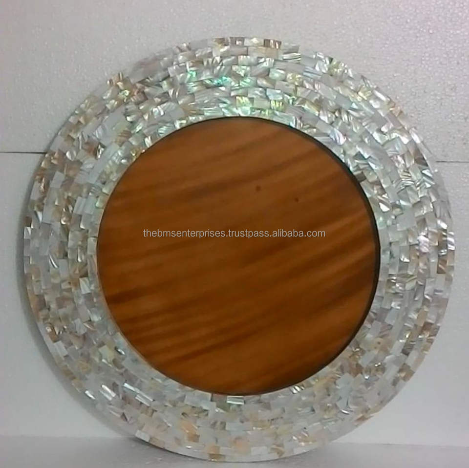Handmade Octagonal Wood Frame Luxury Modern Petal Pattern Bone Resin Inlay Wall Hanging Mirror Best Quality Decorative BMS