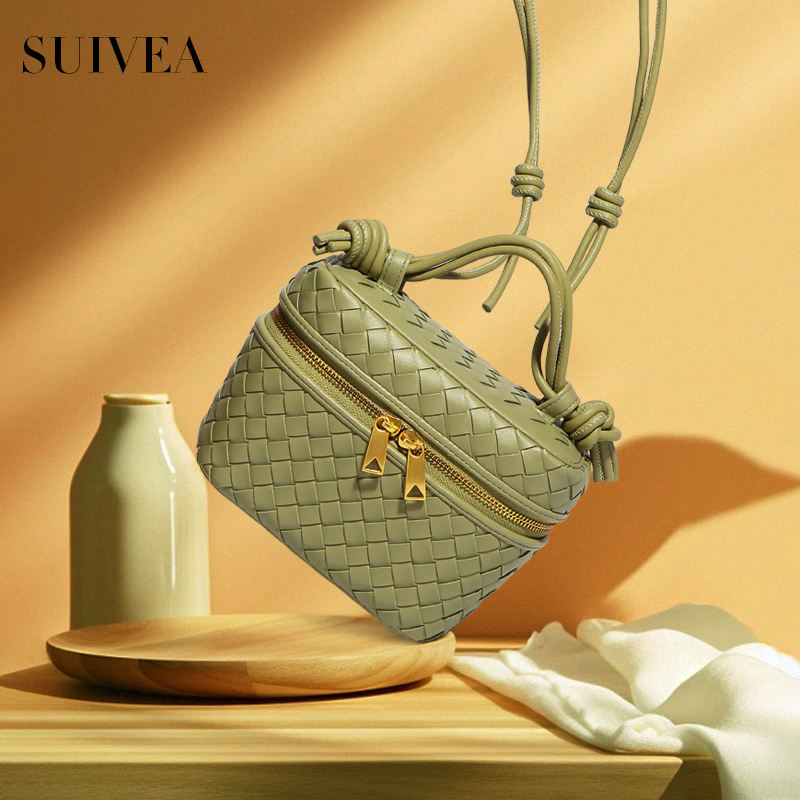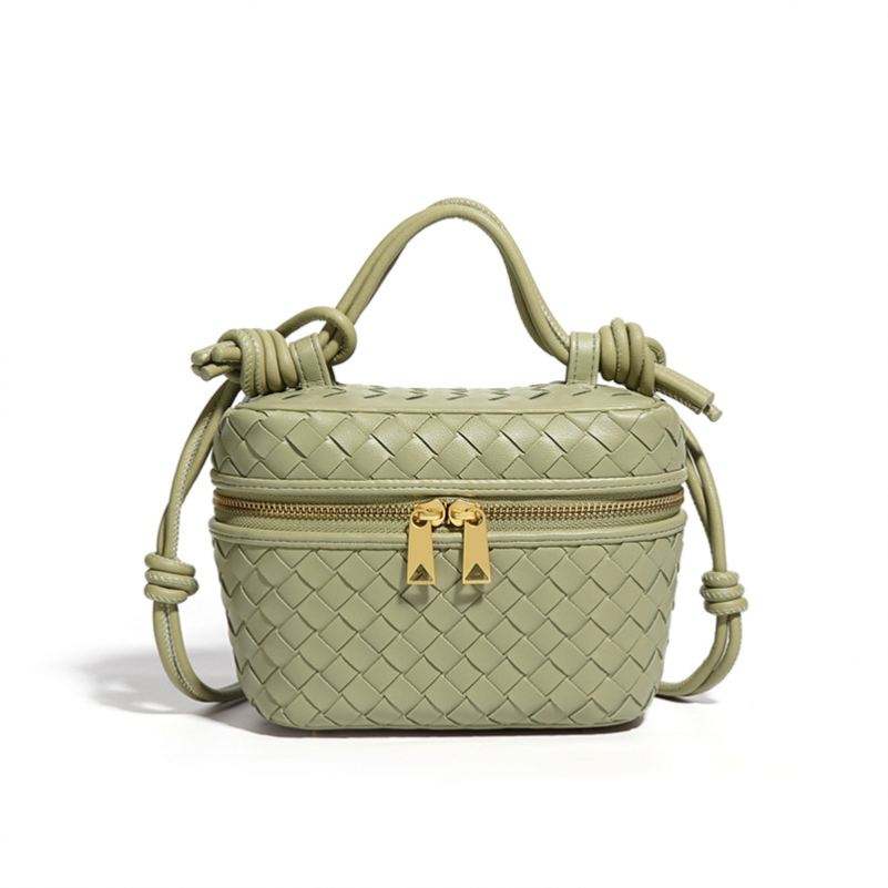 Handmade Braided Bag Simple Bag Fashion New Double Zipper Box Handbag Niche Texture Pure Color Hundred Shoulder Crossbody Bag
