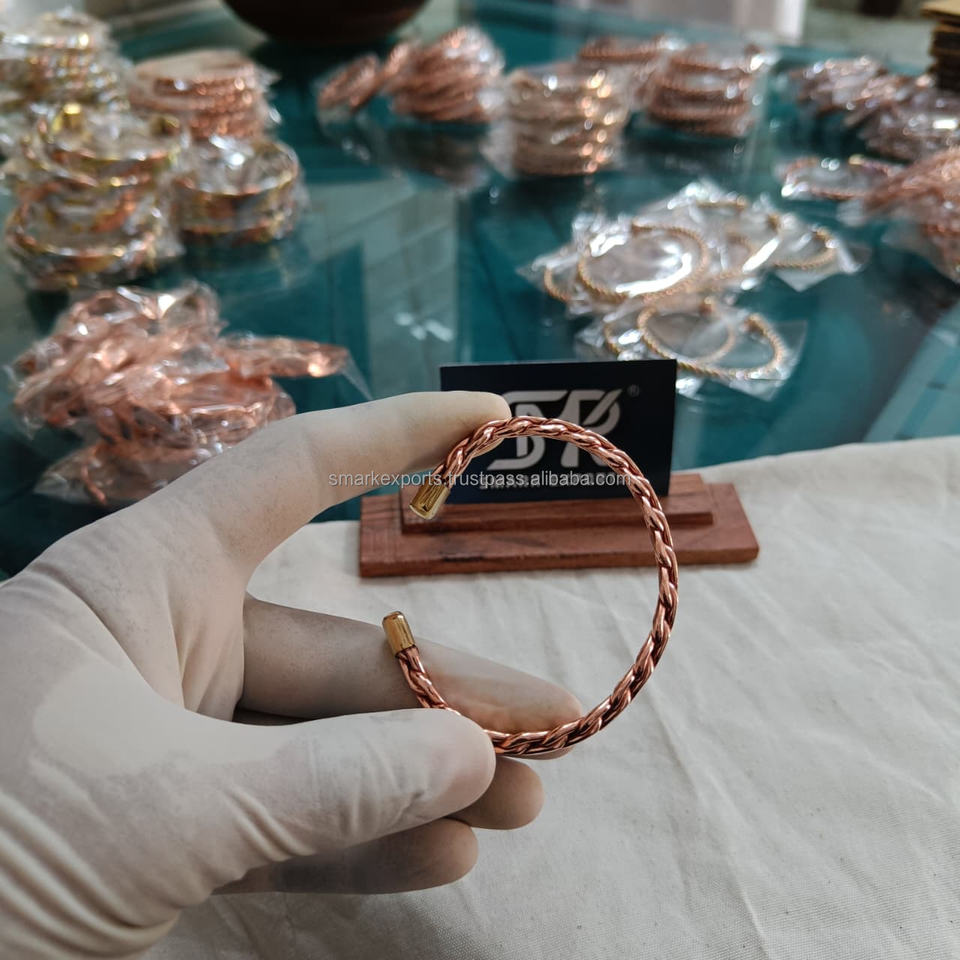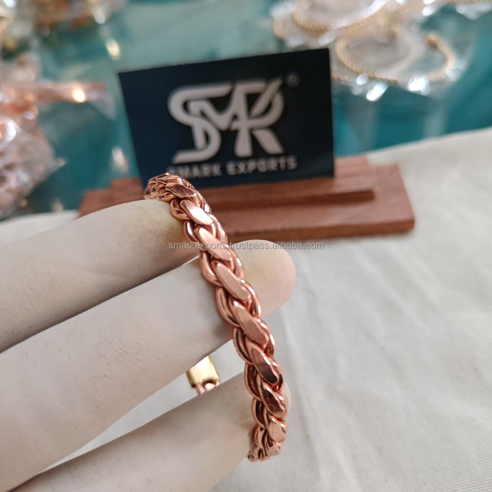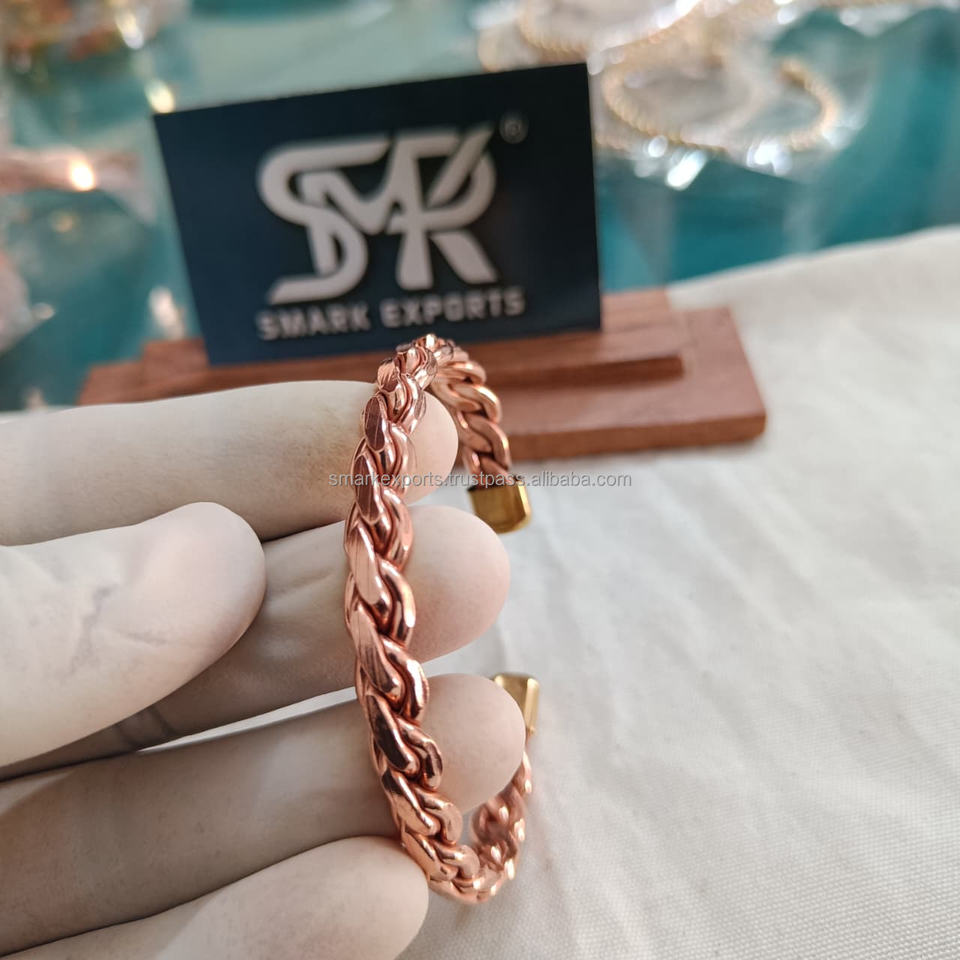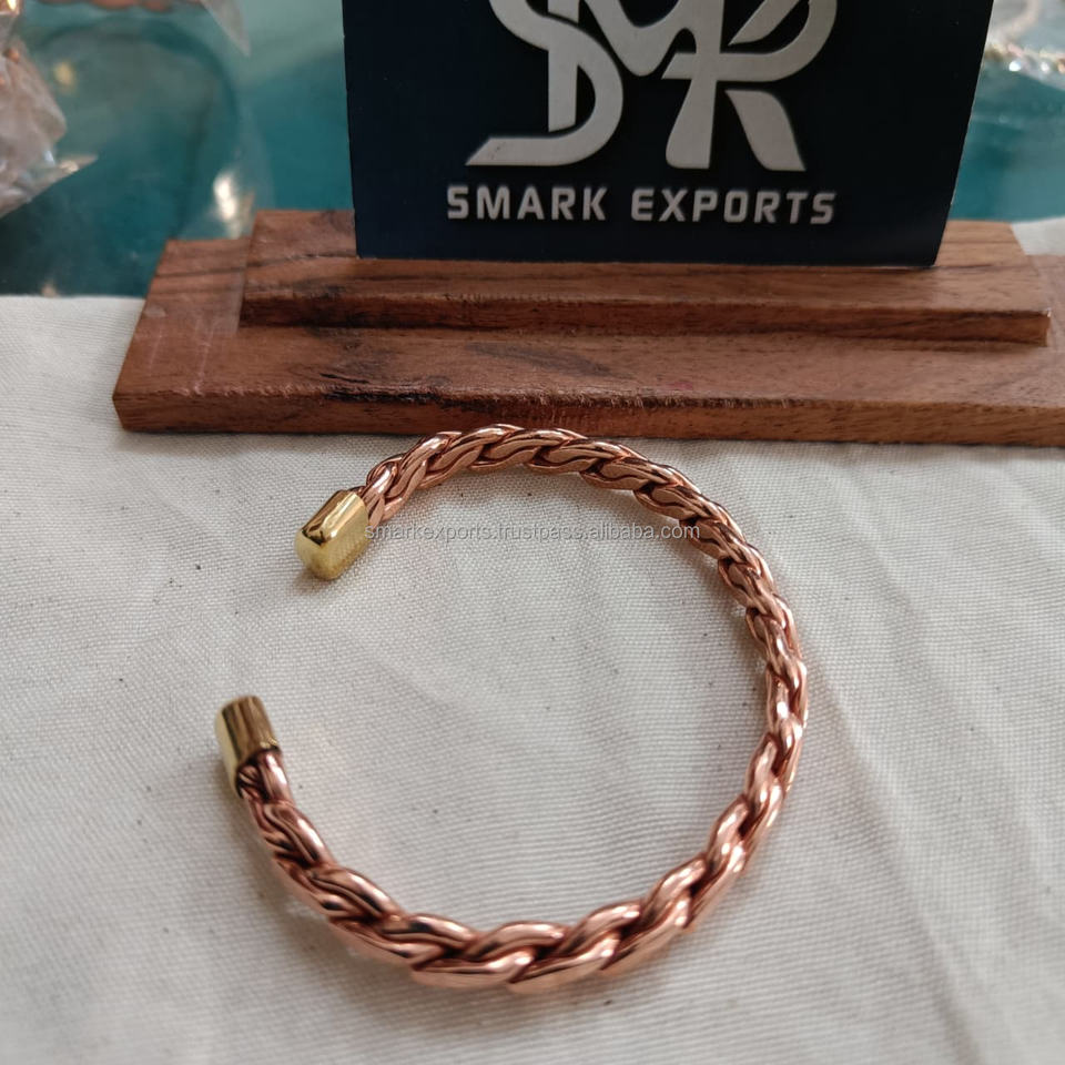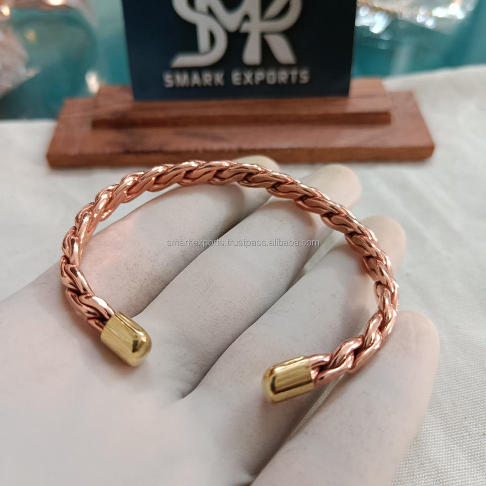 Handmade Braided Copper Bangle Bracelet Kada Stylish Adjustable Pure Copper Wristband for Men and Women Jewelry