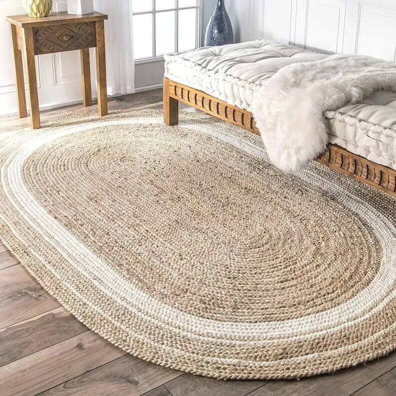 Handmade Braided Oval Jute Rug Large Eco Friendly Home Decor Rug Farmhouse Interior
