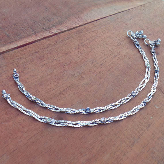 Item name:Braided Silver Anklets with Gemstone Accents
