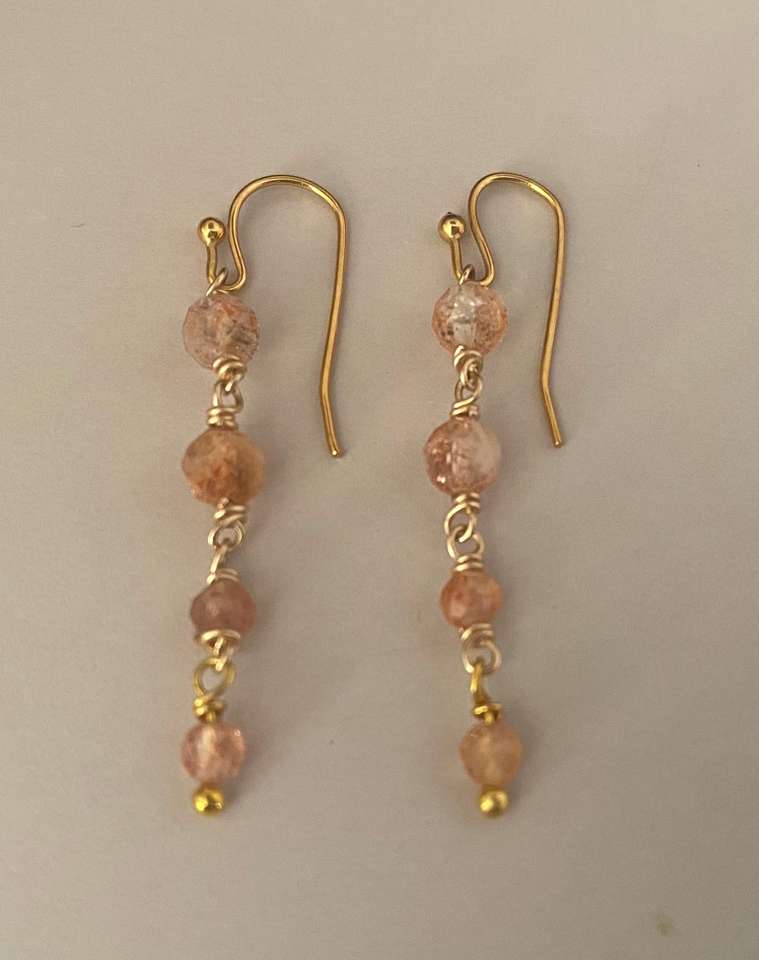 Handmade Brass 14K Gold Plated Trendy Dangle Earrings with Sunstone Gemstone Work for Women Wedding Party Hldi Mehendi