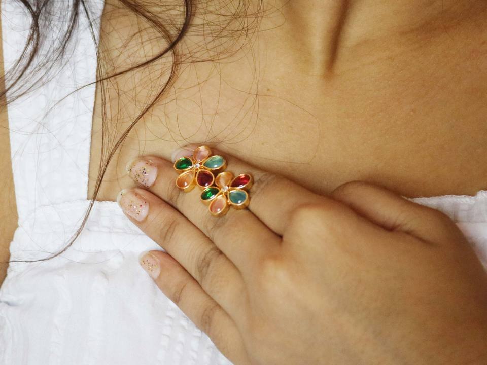 Handmade Brass 18k Gold Plated Flower Stud Earrings with Multi Quartz Gemstones