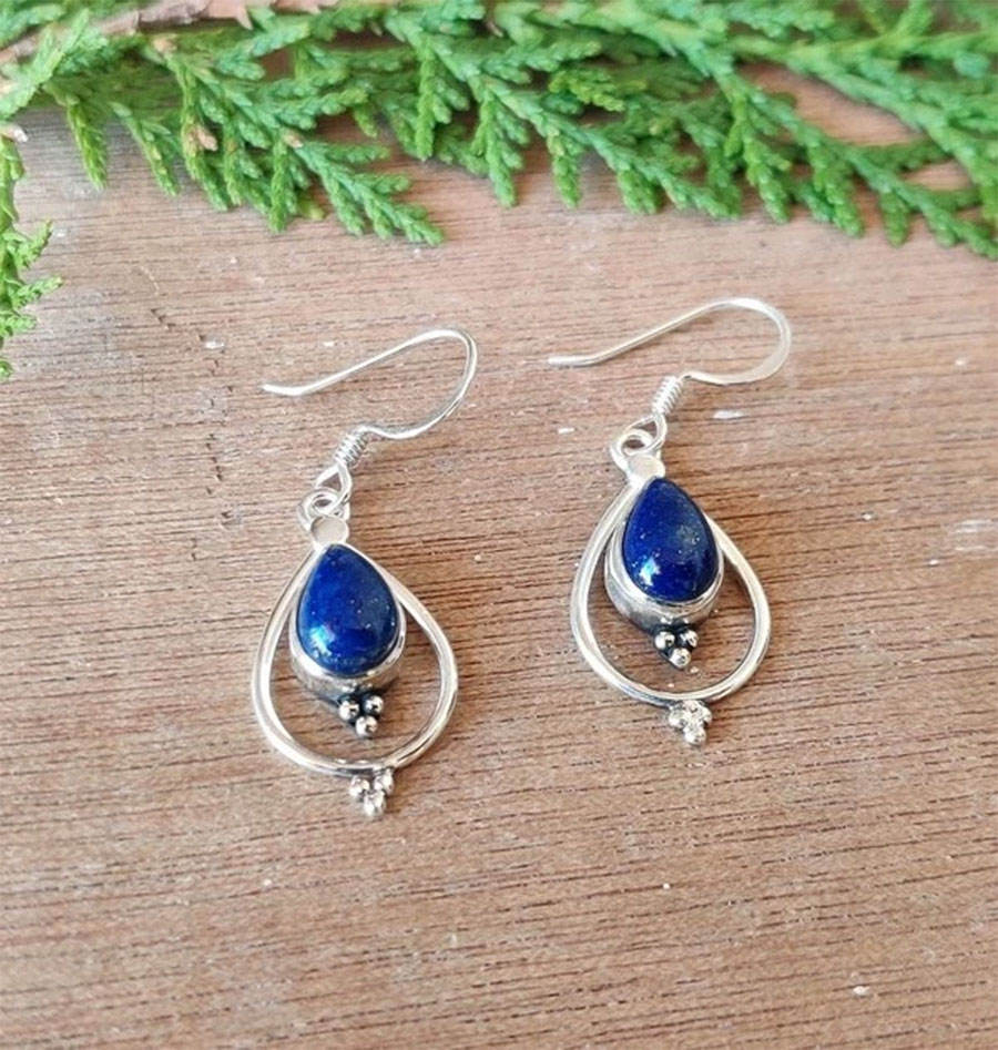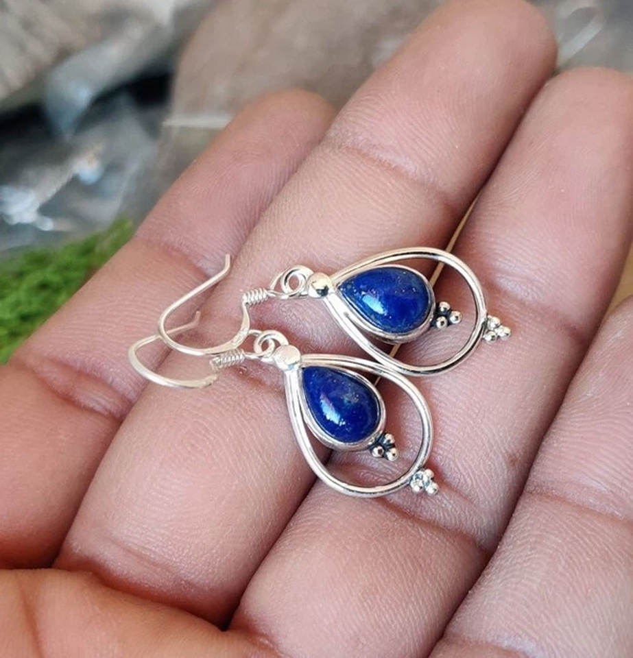 Handmade Brass Dangle Earring Natural Lapis Lazuli Stone 6X9mm For Wholesale Price