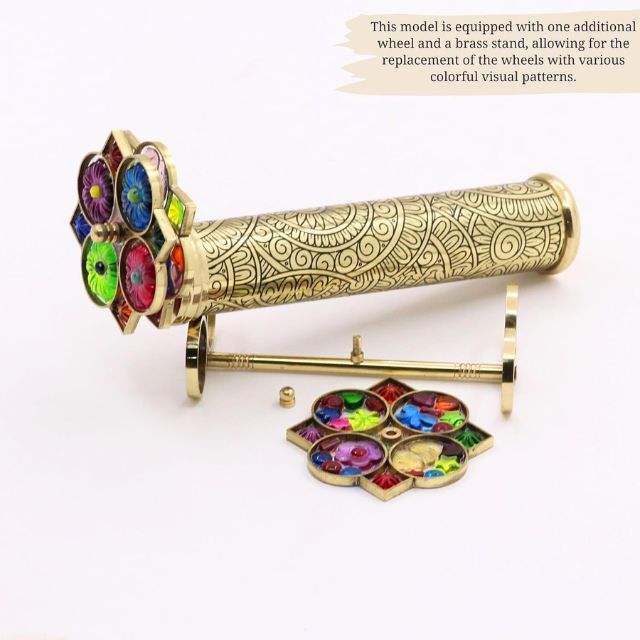 Handmade Brass Kaleidoscope with Interchangeable Wheels and Brass Display Stand Unique & Uncommon Gift for Special Occasions