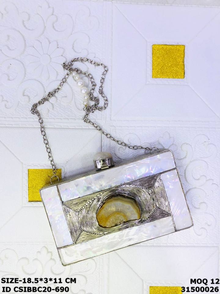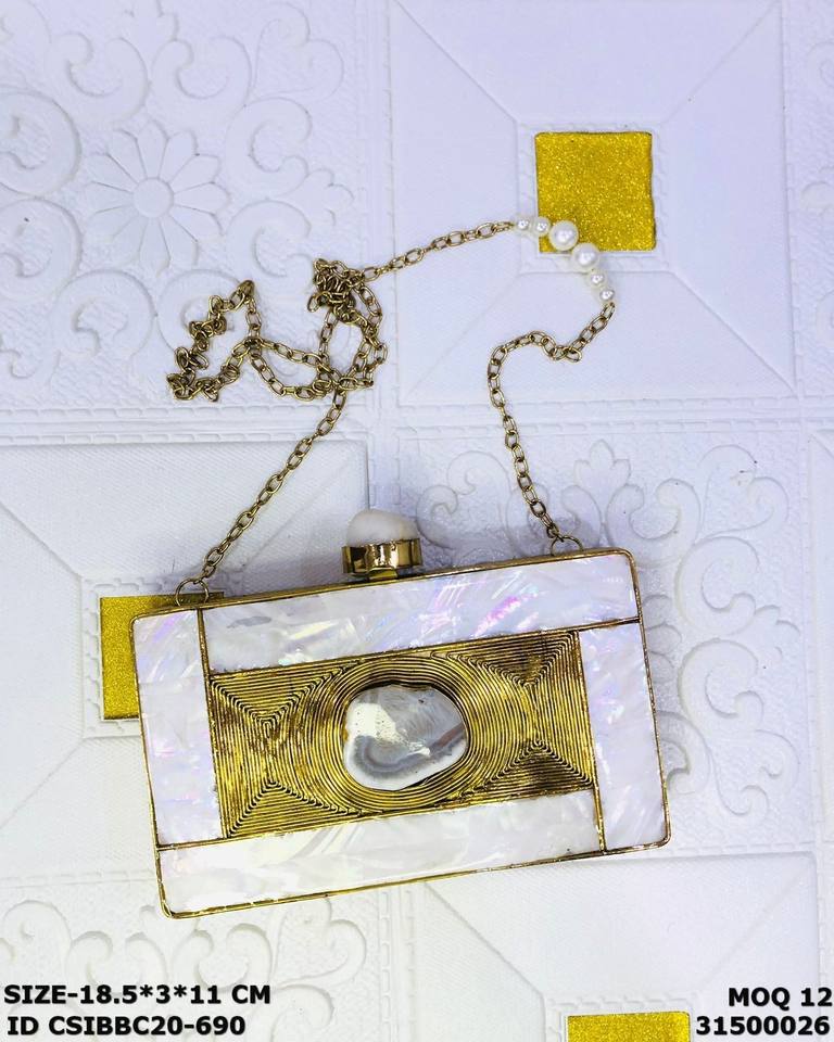 Handmade Brass MOP Bridal Clutch Magnetic Closure Chain Strap Synthetic Lining 1-1.9L Capacity Multi-Function Fashionable