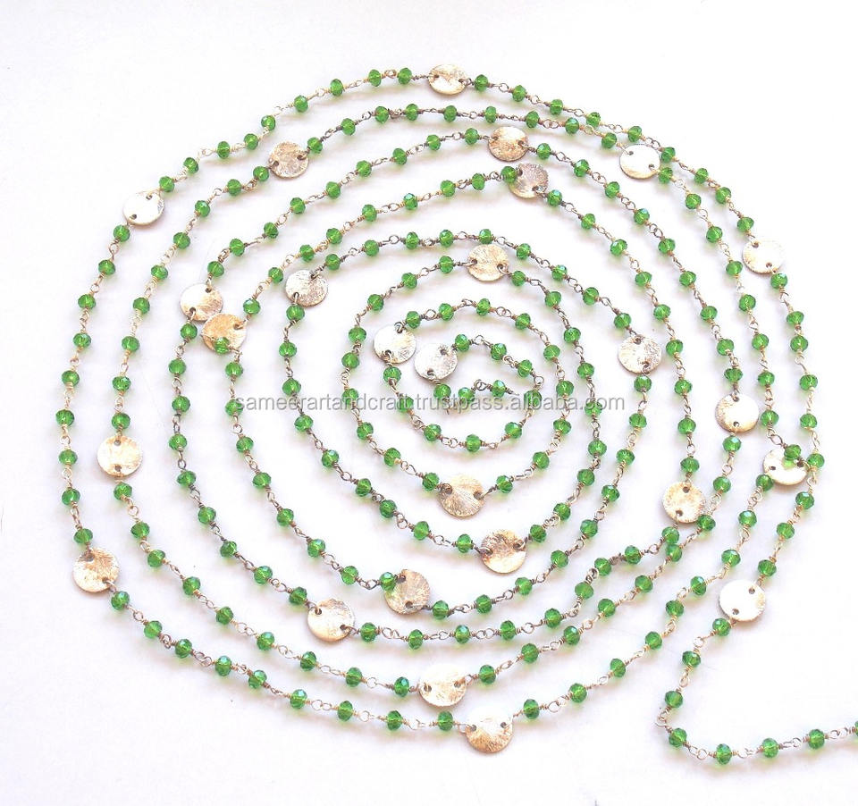 Attractive Green Quartz Gemstone Beaded Coin Rosary ChainApplication