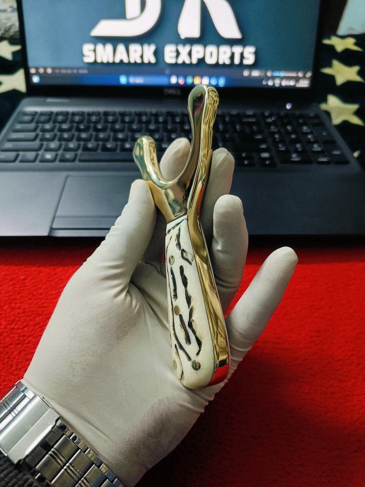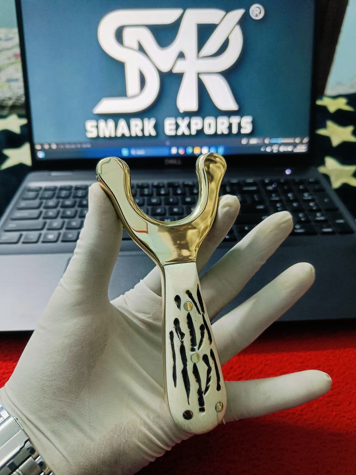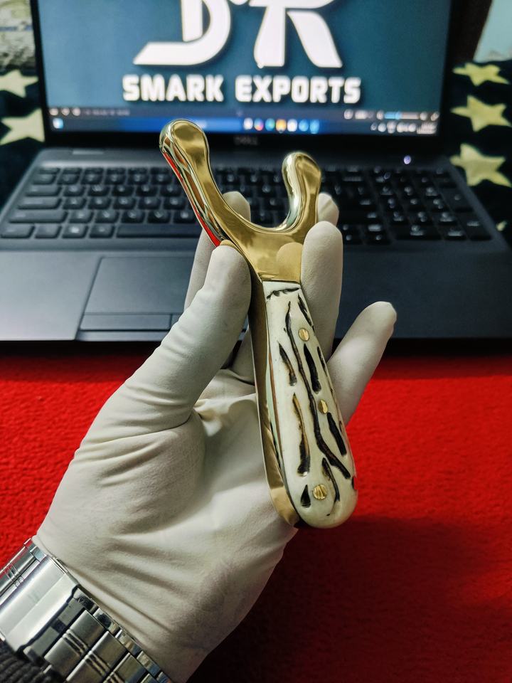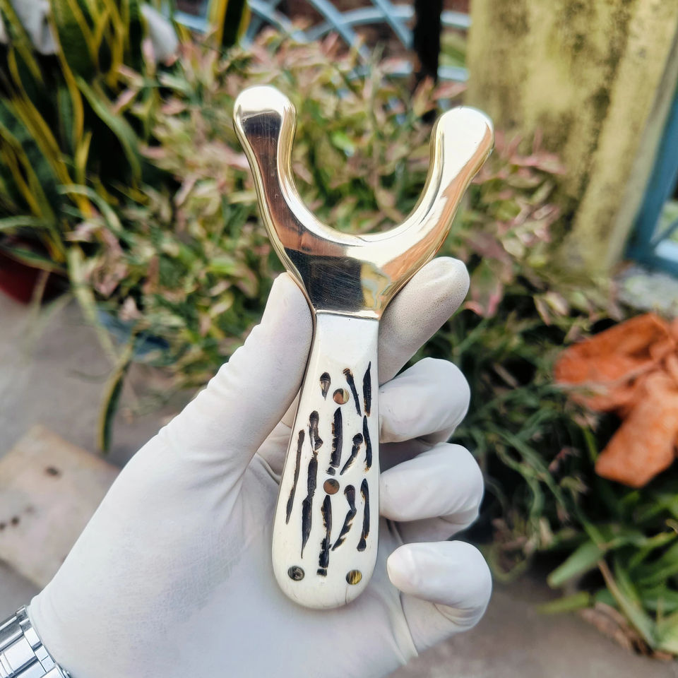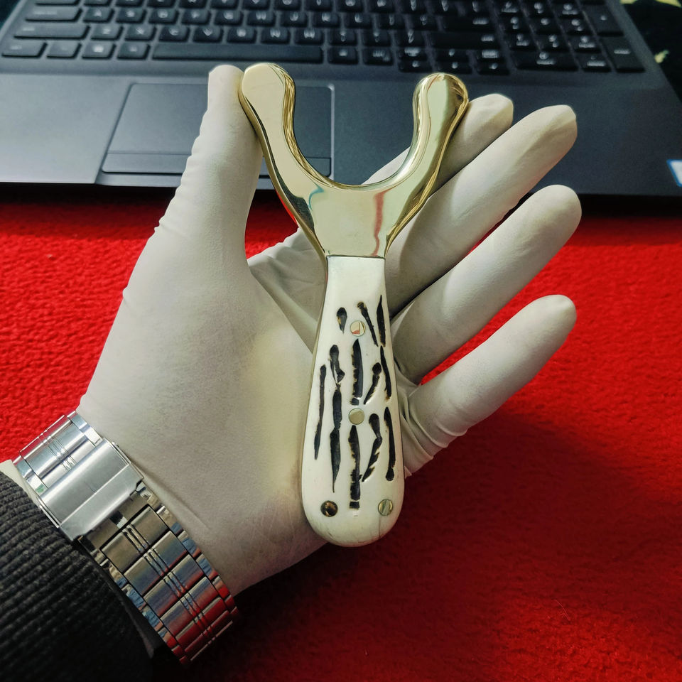 Handmade Brass Slingshot with Bone Handle Outdoor Hunting Catapult High-Precision Pocket Slingshot for Adults & Collectors
