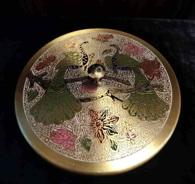 Handmade Brass Spice Storage Box Multi Compartment Masala Organizer