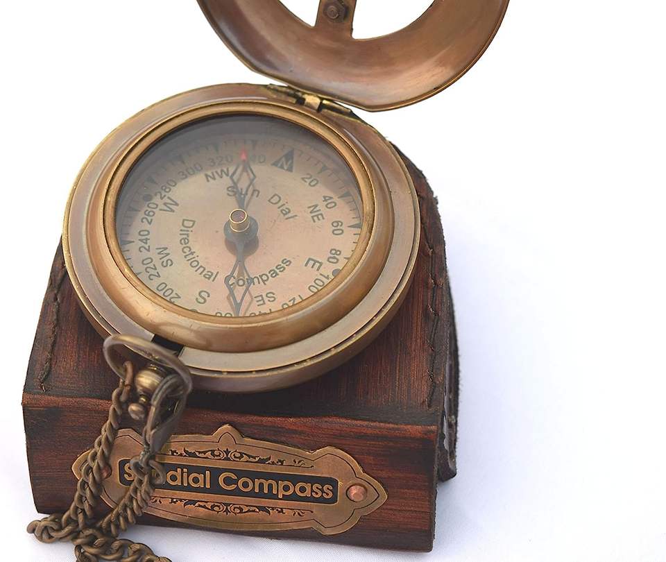 Handmade Brass Sundial Compass Unique Steampunk Accessory for Men Push Open Design for Camping and Hiking