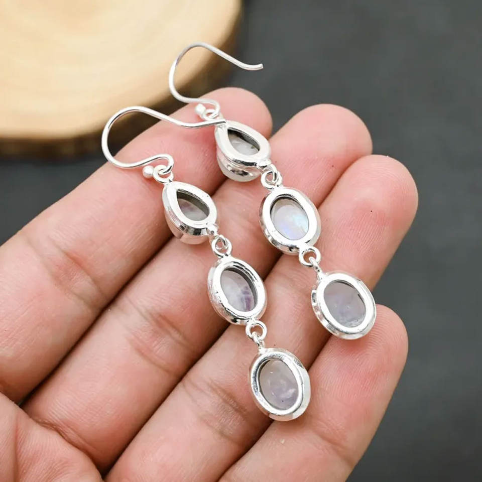 Handmade Sterling Silver Vintage Dangle Pair Earring Lapis Lazuli Stone 6To10MM Water Drop Shape Bezel Set Wedding Party