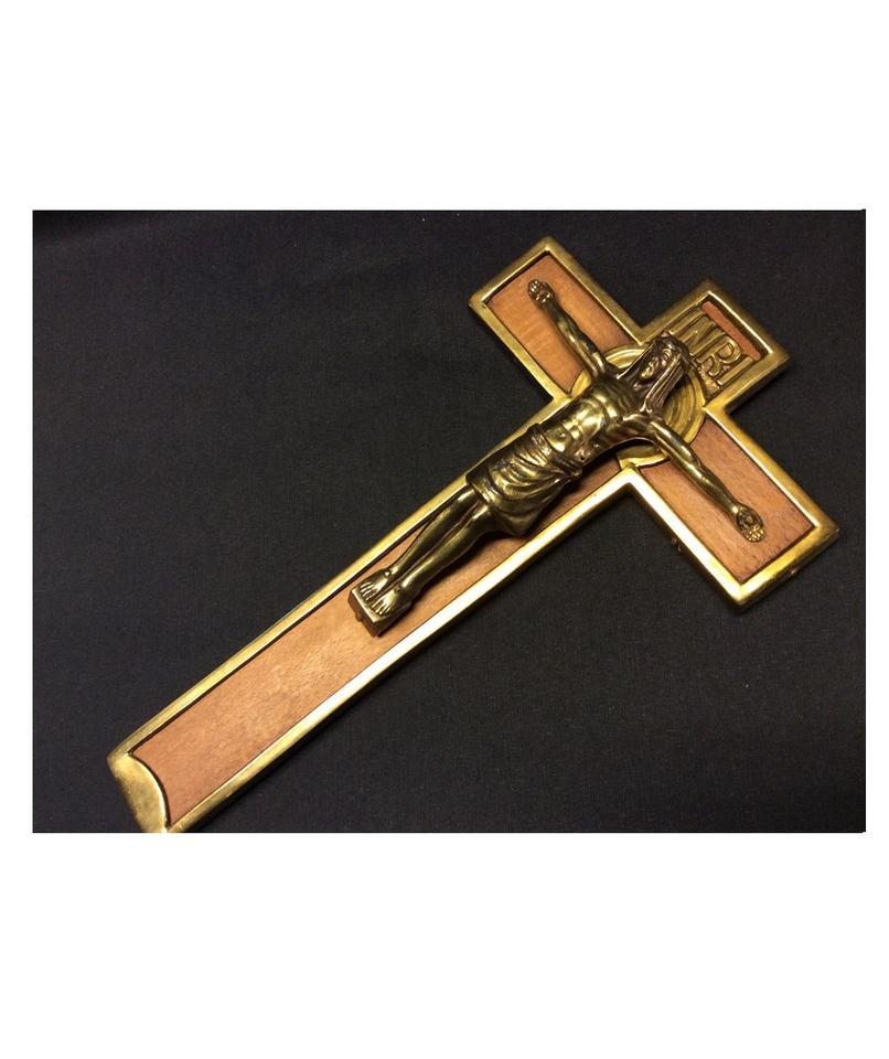 Handmade Brass and Wooden Crucifix Christian Cross Wall Hanging Religious Decor for Church Home Prayer Space