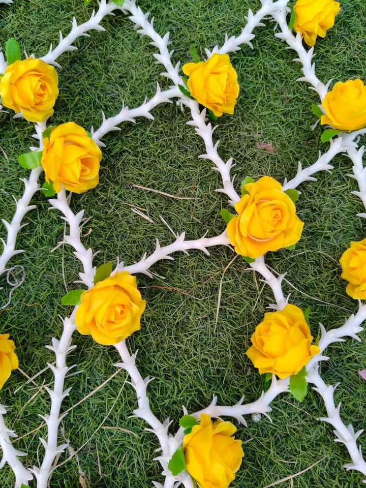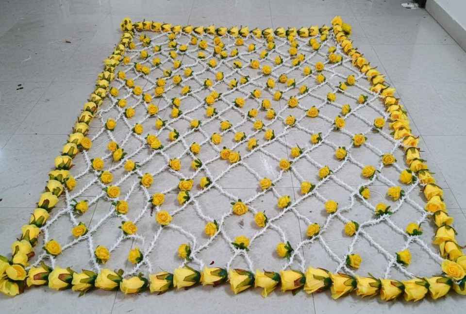 Handmade Bridal Entry Chadar With Wooden Sticks Tuberose Yellow Phoolon Ki Chadar Bride Welcome Veil Dulhan Entrance Accessory