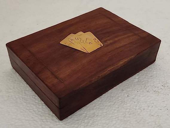 Handmade Brown Playing Cards Holder Case 1-Deck Organizer Box Wooden Indian Vintage Game
