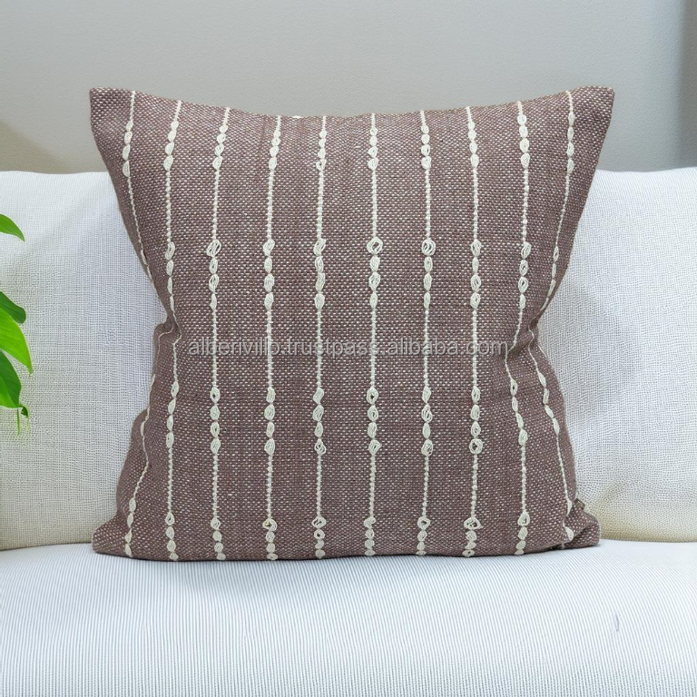 Handmade Brown Woven Pillow and Boho Cushion Cover Modern Striped Design Festive Home Decor for Sofa From India