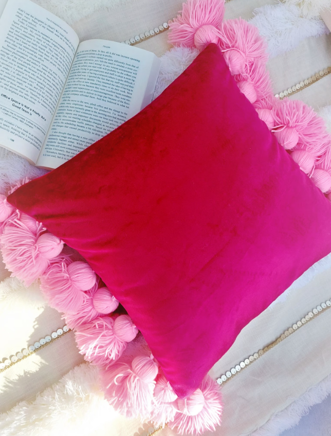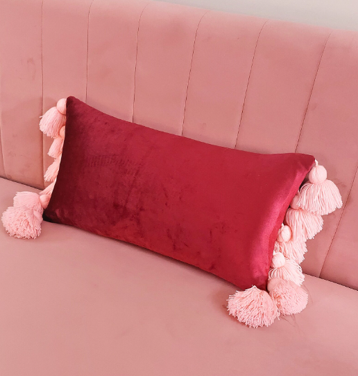 Cherry Velvet Pillow Covers With Bubble Gum Pink Tassels