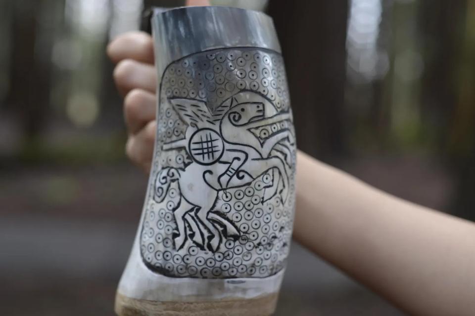 Handmade Buffalo Horn Tankard Carved Viking Mug Norse Warrior Style Cow Drinking Horn for Religious Parties Natural Crafts