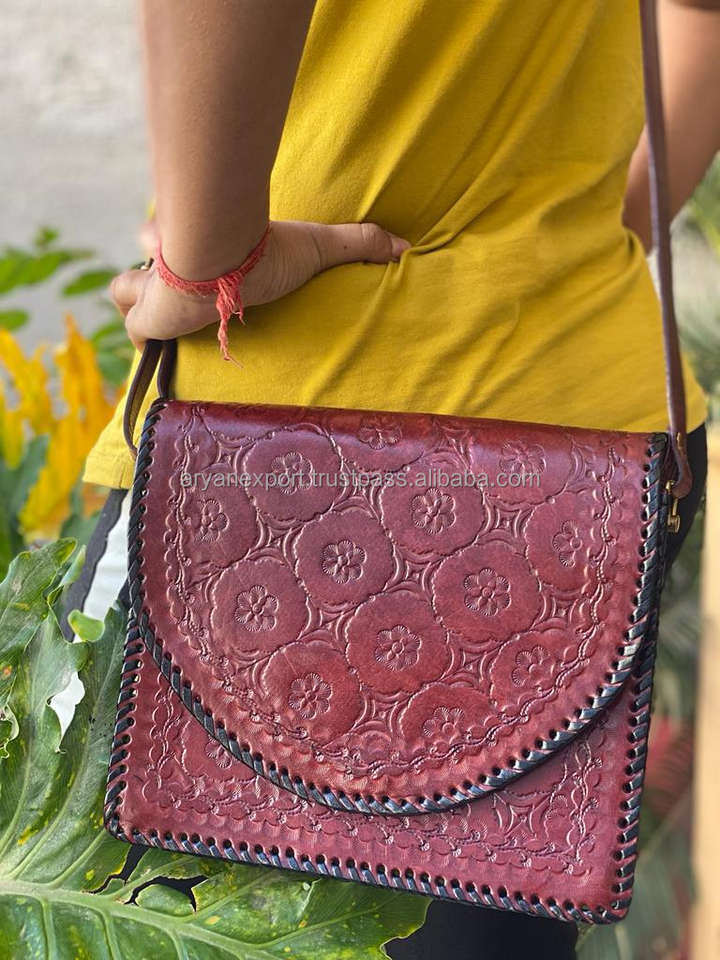 Handmade Buffalo Leather Women's Sling Bag Vintage Casual Ins Zipper Snap Closure Canvas Lining Two Shoulder Bag Satchels