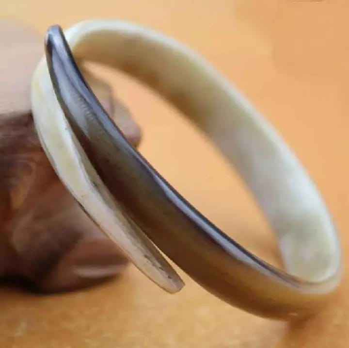 Handmade Buffalo Horn Black and White Striped Curved Bracelet for Woman and Man