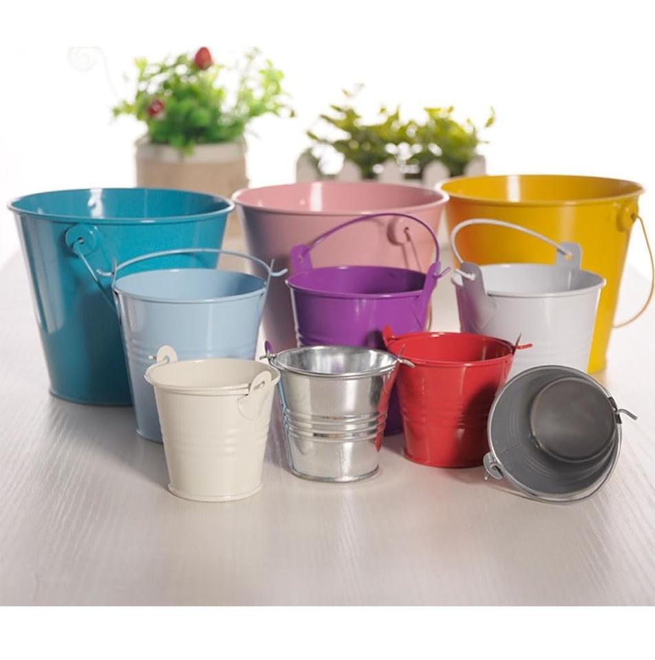 Handmade Bulk Galvanized Metal Pail Buckets with Handle for Outdoor & Garden Decor Colorful Flower Planter for Home Use