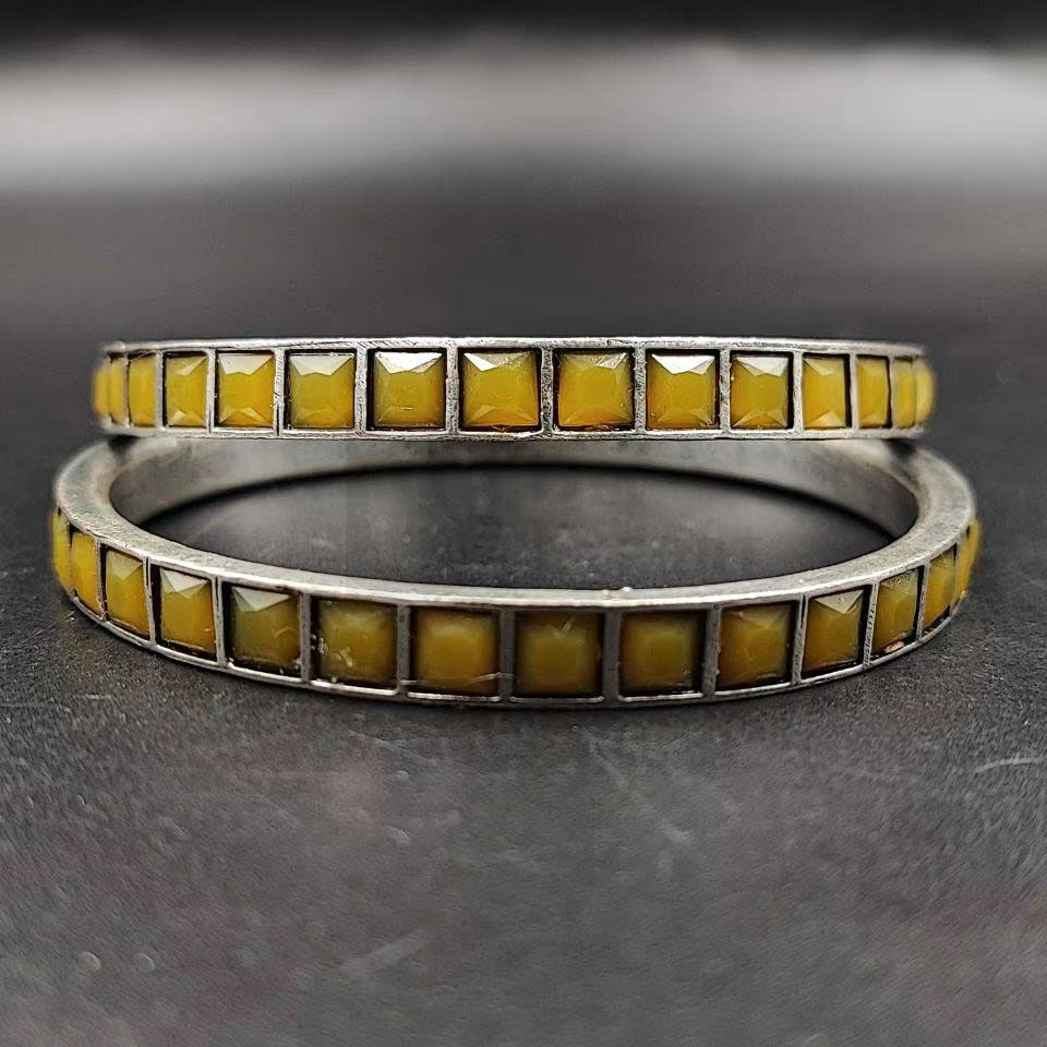 Handmade Bulk Pure Brass Oxidized Bracelet Vintage Style Party Wear Silver Look Bangle with Pear Diamond Free Size for Gifts