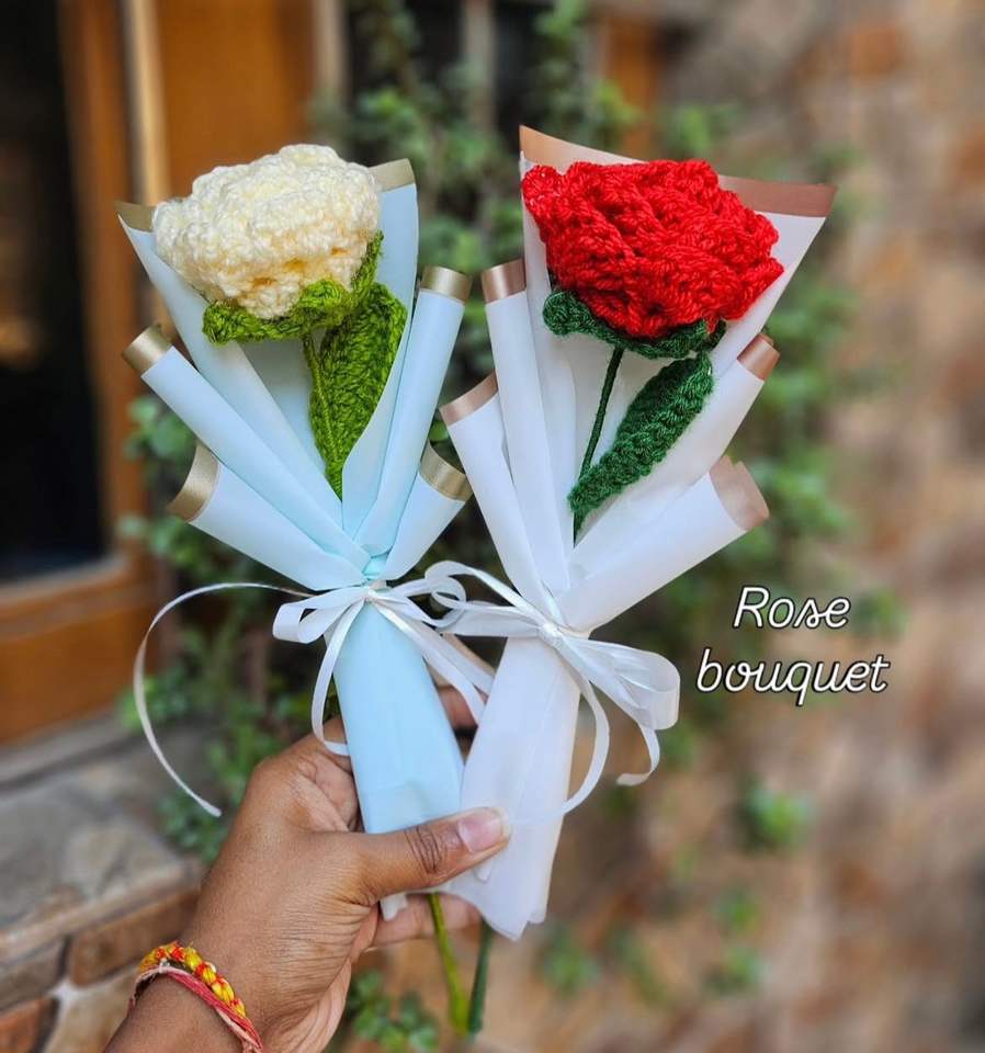 Handmade Bulk Wool Yarn Flowers Crochet Tulip Rose Lily Sunflower Bouquet for Valentine Day Vase Wedding By Indian Consigners