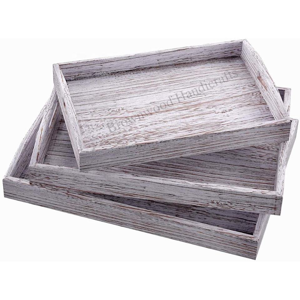 Handmade Burnt White Antique Wooden Trays Premium Quality Pine Wood Serving Tray Set of Three for Kitchen Tabletop Home Decor
